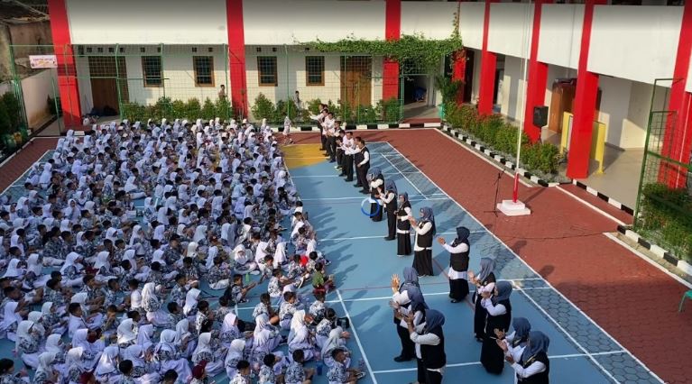 Kelas 1 siap untuk belajar bersama dalam acara keagamaan yang diselenggarakan di Mesjid Agung CIanjur